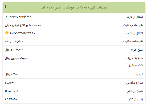 به موجب این چک مبلغ  ….. 20.000.000 ….. ریال در وجه …..   میثم خلیل زاده  ….. به شماره ملی ….. 4989970764 ….. بابت ….. پورسانت بازاریابی نیشاوب….. یا به حواله کرد بپردازید.